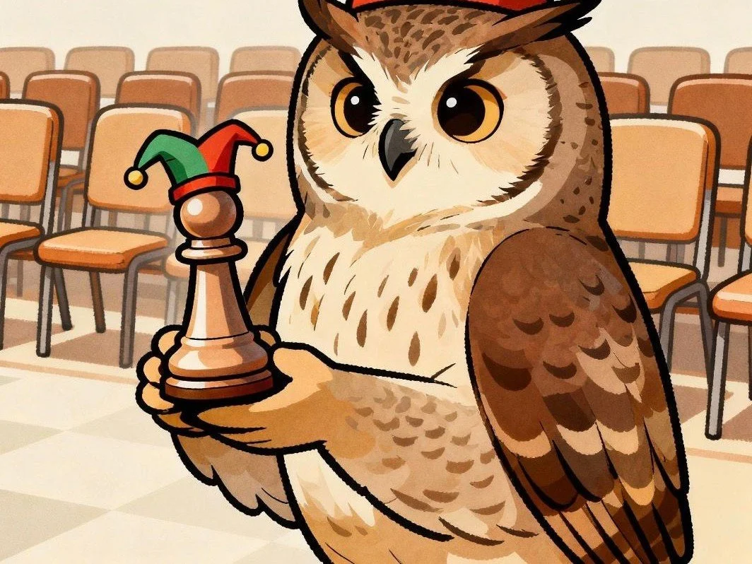 Schach im Stadtrat: Eule(r) mit Spiel-Bauer. Bild: Perplexity