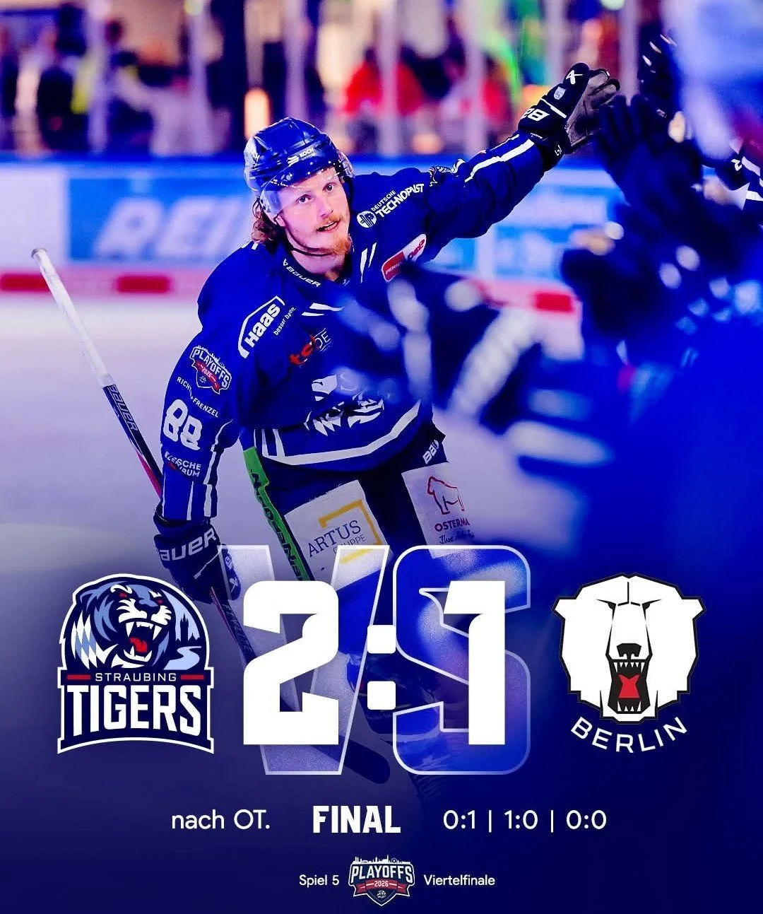 Nicht Siegtorschütze Hede, sondern Ausgleichsmacher Allison. Foto: Straubing Tigers