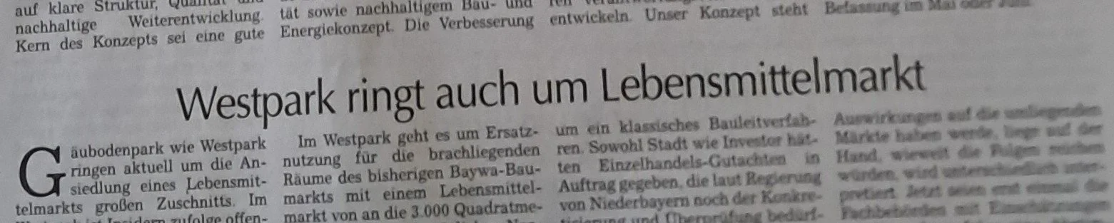 Leser dieses Blogs wissen, dass ich den Westpark-Plan kritisch sehe. Dieser Blog schätzt den Konkurrenzkampf zwischen den beiden Parks so ein: Wenn der Westpark die Fachmärkte bekommt und der Gäubodenpark nicht, könnte der Gäubodenpark weiter ausbluten. Auch das dortige Ärztehaus könnte dann Praxen an den Westpark verlieren. Das wäre für ein innenstadtrelevantes Gebiet wie den Gäubodenpark katastrophal.